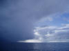 This strange cloud appeared just before we experienced a severe thunder storm (note the storm clouds moving in on the right side of the photo). We watched from Carina's stern as lightning struck and damaged the French-flagged catamaran, Tam-Tam, shortly after this picture was taken. |