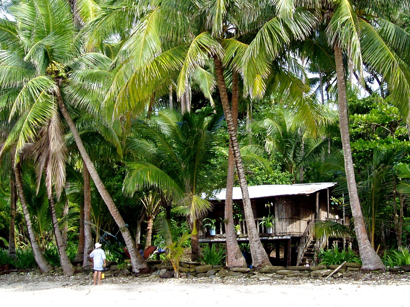 Leonides, an 87 year old Panamanian, occupies this house on the beach of Isla Pedro Gonzales. He boasted that he has two younger wives (47 and 76), 17 children and 72(!) grandchildren. Leonide is definitely NOT a poster child for population control. |