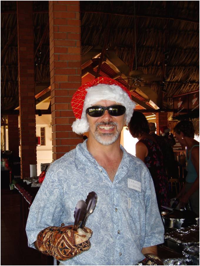 Frank Nitte (Windsong) served us turkey and ham at the Christmas potluck held under the bohio at the Balboa Yacht Club. |
