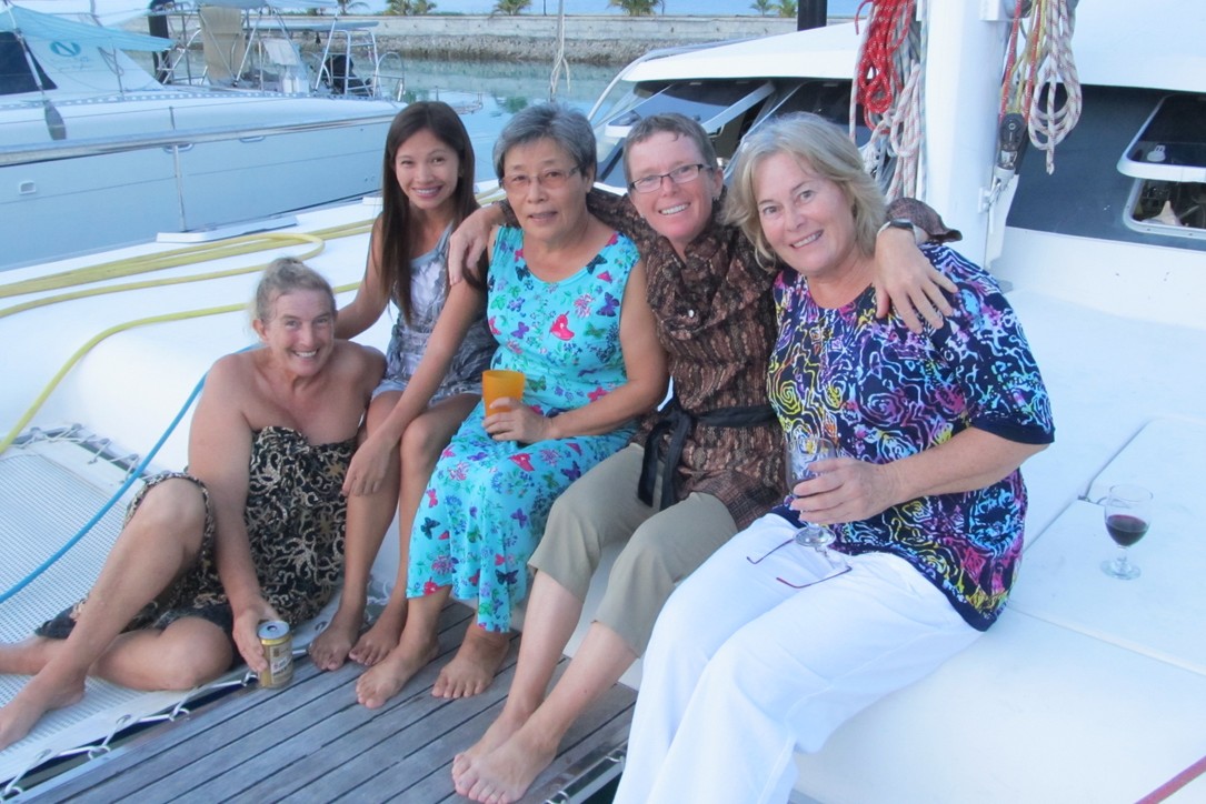 Gaye, Love, Hwang, Leslie & Lorna were just a few of those gathered to help Lee aboard Chakira celebrate his 72nd birthday. |