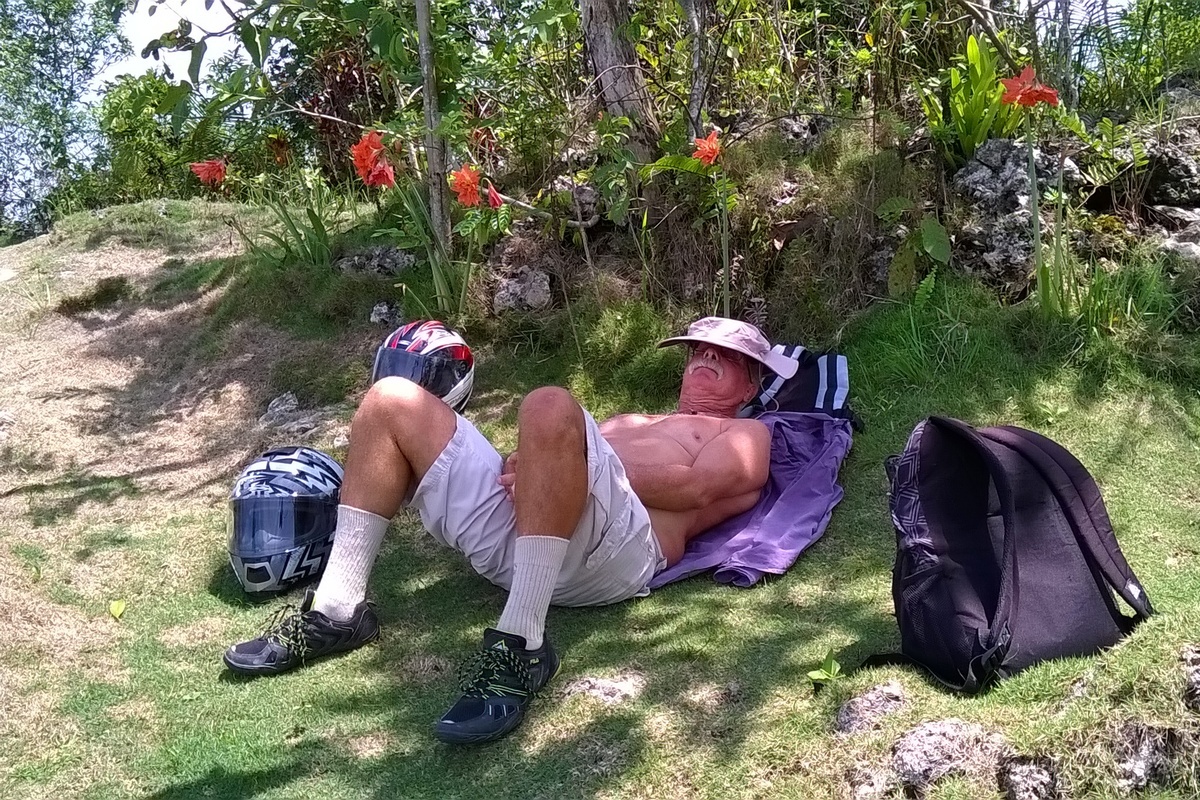 is 1755 feet above the sea. Samal Island's highest point. About half of that elevation we hiked - as opposed to traveling by motorbike - at high noon in mid summer. It was a lovely spot...to take a nap. |
