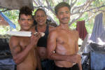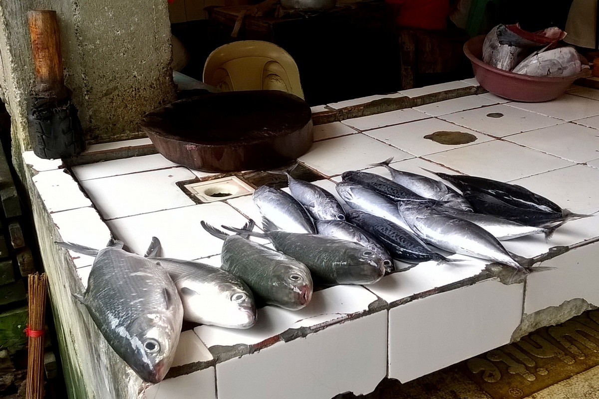fish vendor happened to be around and offering a nice catch of yellowfin; they confer here on the proper cut. |
