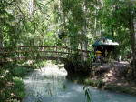 is in a ravine where mineral water runs over numerous small smooth limestone cliffs, creating a lovely and serene setting |