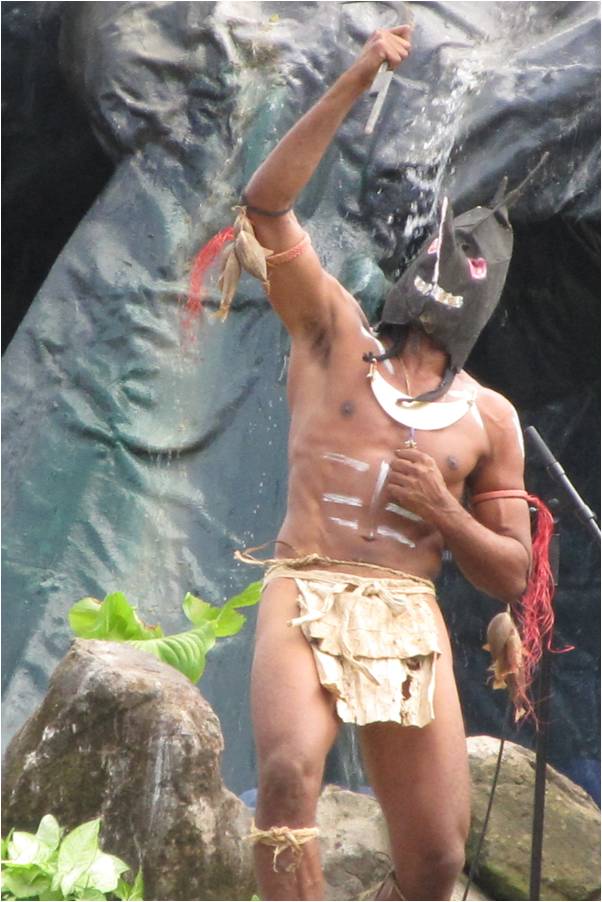 male dancers were tattooed and outfitted with Polynesian tapas. |