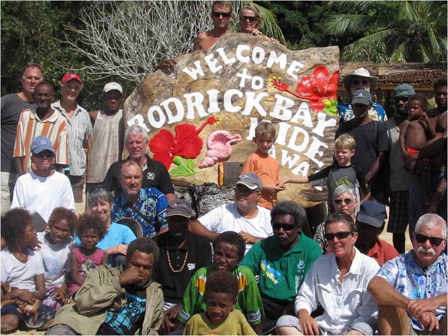 after a heart attack and evacuation to Australia for treatment. Roderick Bay, with chief John Ruka and Larry of SV Tribute, used the occasion to get together for a nice supper ashore. |