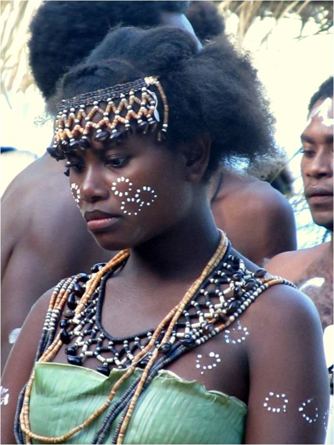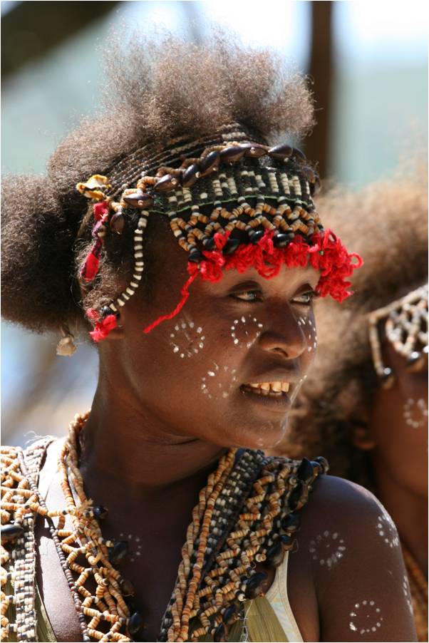 The second day of the festival, a group from nearby Sandfly Island staged a dance and enacted the negotiation of a bride price. This beauty was part of that group. |