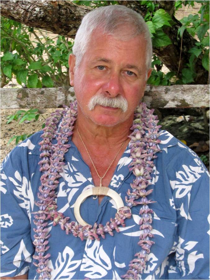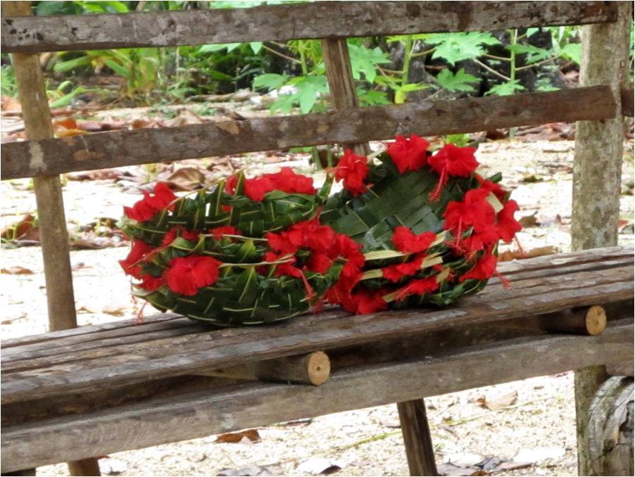 Each visitor received a leaf or floral necklace presented by an island beauty; here Leslie receives hers. |