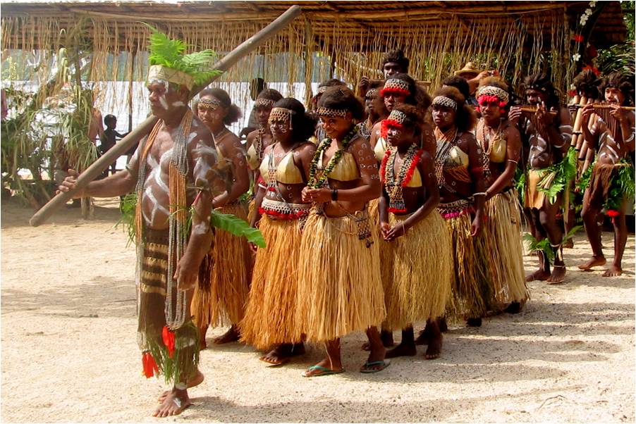 The local boys comprise a pan pipe band that play and dance for visitors. |