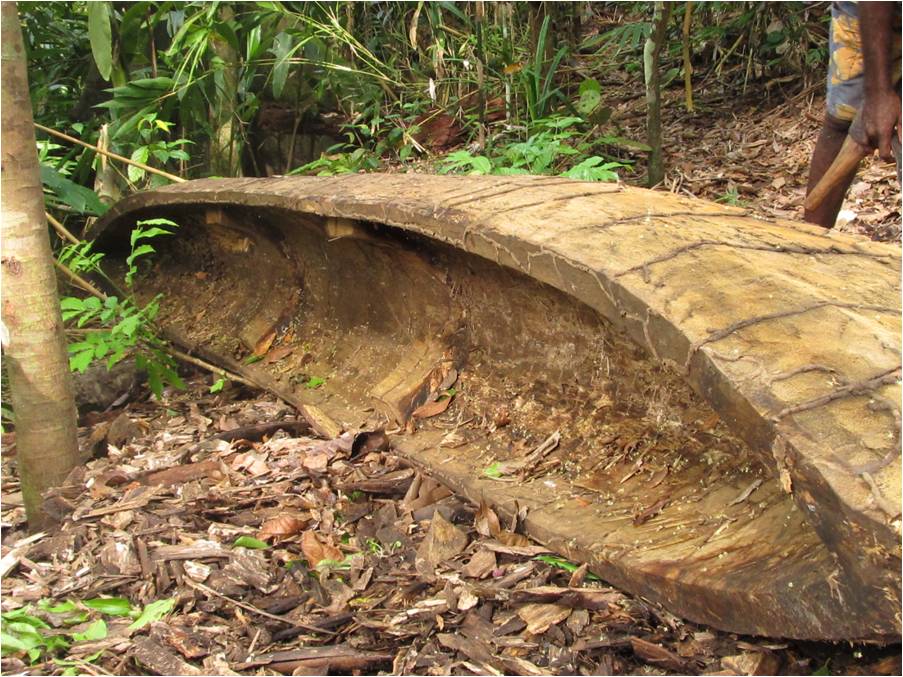 using simply and axe and an adze. |