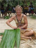 While in Roderick Bay, Kathy learned to make roofs and walls for homes using sengo palm. The houses constructed as such are completely dry inside even in the most torrential downpour. |
