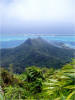 High up the mountain and around the NW shoulder, a view emerges of Faanui Bay and the NW corner of the lagoon. |