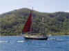 Martin Hammer of the gaff rigged Anima III welcomed his old friend Nicki as crew in the Society Islands. They are from Vienna. Anima is an Italian word meaning "soul". |