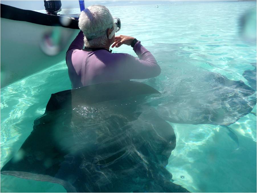 Philip's possession of fish parts made him a popular tourist amongst the stingrays. (Photo by Martin of Anima III.) |