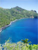 This is the view from an ancient Polynesian site on a hillside overlooking the bay. Not to be outdone, the Catholic church erected a large white cross and a shrine of Jesus on the same site. |