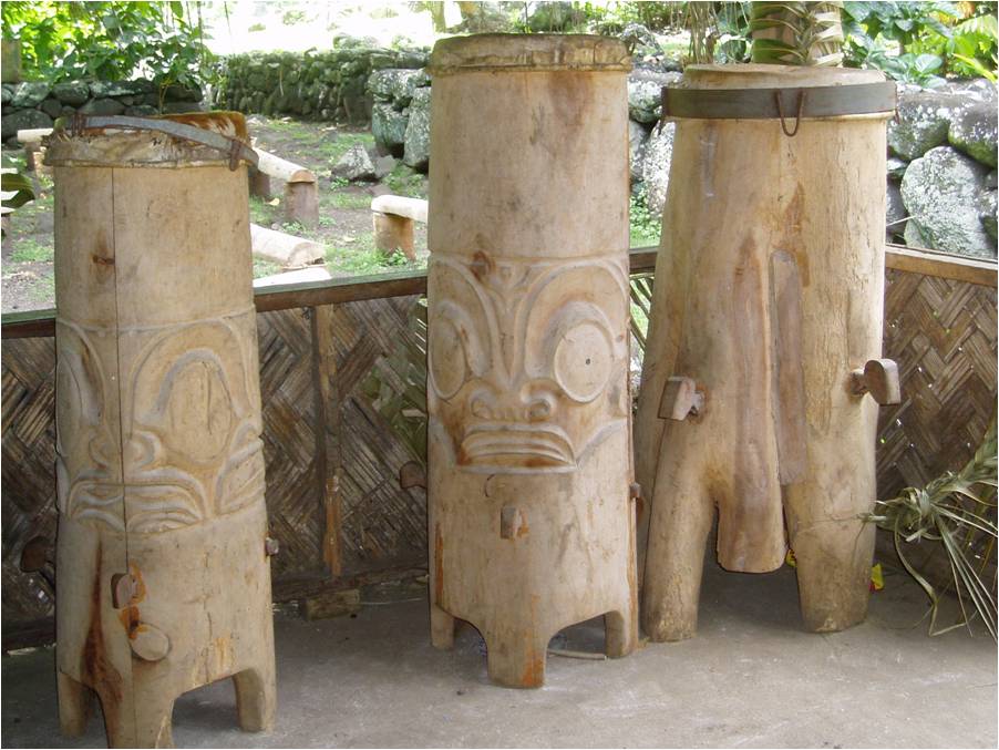 In an open-sided artisana building devoted to the display of native-made crafts that were for sale, these ceremonial drums stood in the corner awaiting ceremonial use. |