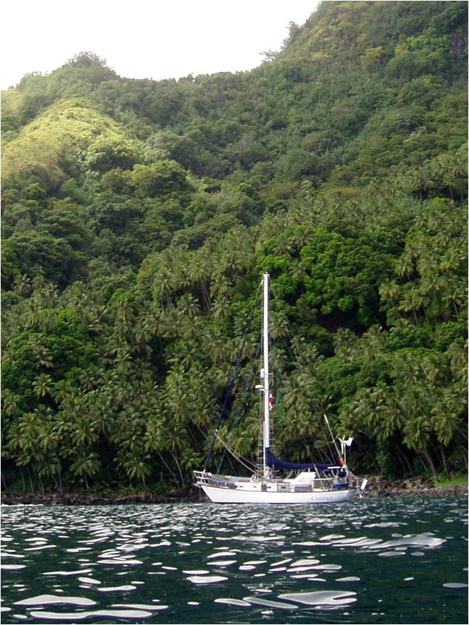 The village of Hapatoni sits on a bay of the same name but the anchoring is not good; we anchored with a few other sailboats in Tefau, the bay to the north. |