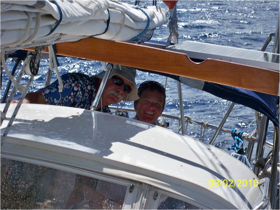 One day we headed out to sea so Mary Beth could get a taste of sailing with ocean swells and to (perhaps) catch a fish. We caught a skipjack, enough for supper, but Mary Beth was surprised with the "rough" seas. (Mary Beth O'Brien photo) |