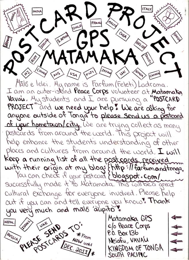 Just before leaving Neiafu, Tonga we learned of an effort to collect postcards from around the world for a small island village school. The response we received was over-whelming. |