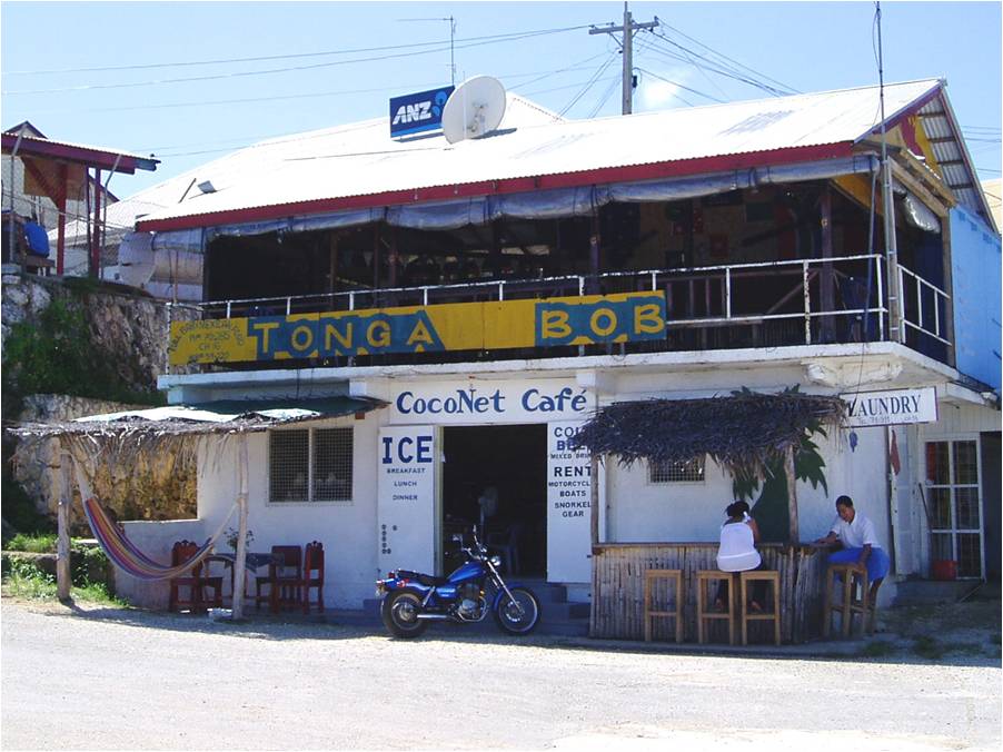 After an arduous passage from American Samoa, we were met at the Customs dock by friends Ingamar and Ed on SV Kuay, who caught our dock lines and gave us a quick tour of Neiafu including the Tropicana Cafe. Philip got introduced to Maka beer, one of the better beers he's had since the 'ole US of A. |