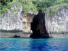 Looking out from Swallows Cave - which sits at the NW end of Kapa Island, there is a lovely view of tiny Luafatu island which sits at the entrance to the Vava'u group of islands. The effect of the reflection of the shimmering blue water and sky peeking into the cave mouth is lovely. |